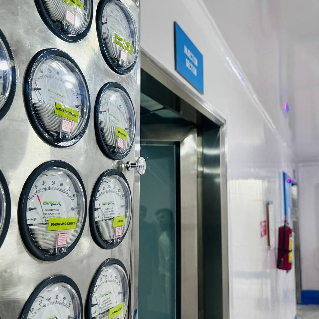 Our HVAC system is meticulously designed to control several key environmental parameters, ensuring consistent and precise conditions during the manufacturing process. These parameters include temperature, humidity, air pressure, and airflow, all of which are vital to maintaining product stability and preventing contamination. The system is regularly monitored and maintained to meet the stringent requirements of pharmaceutical production.